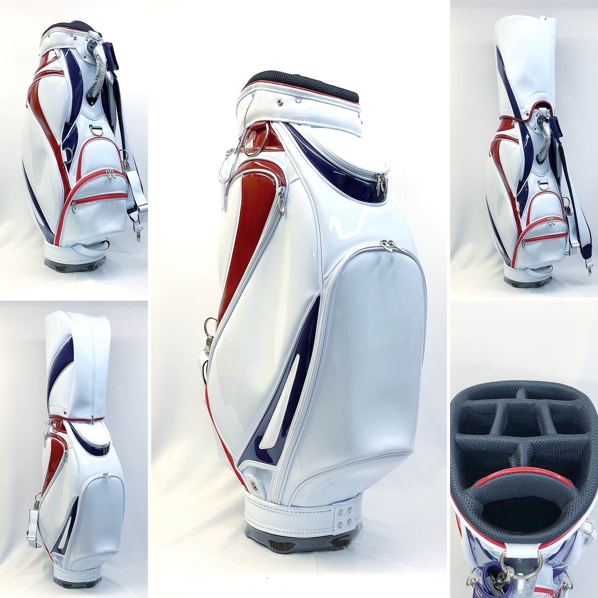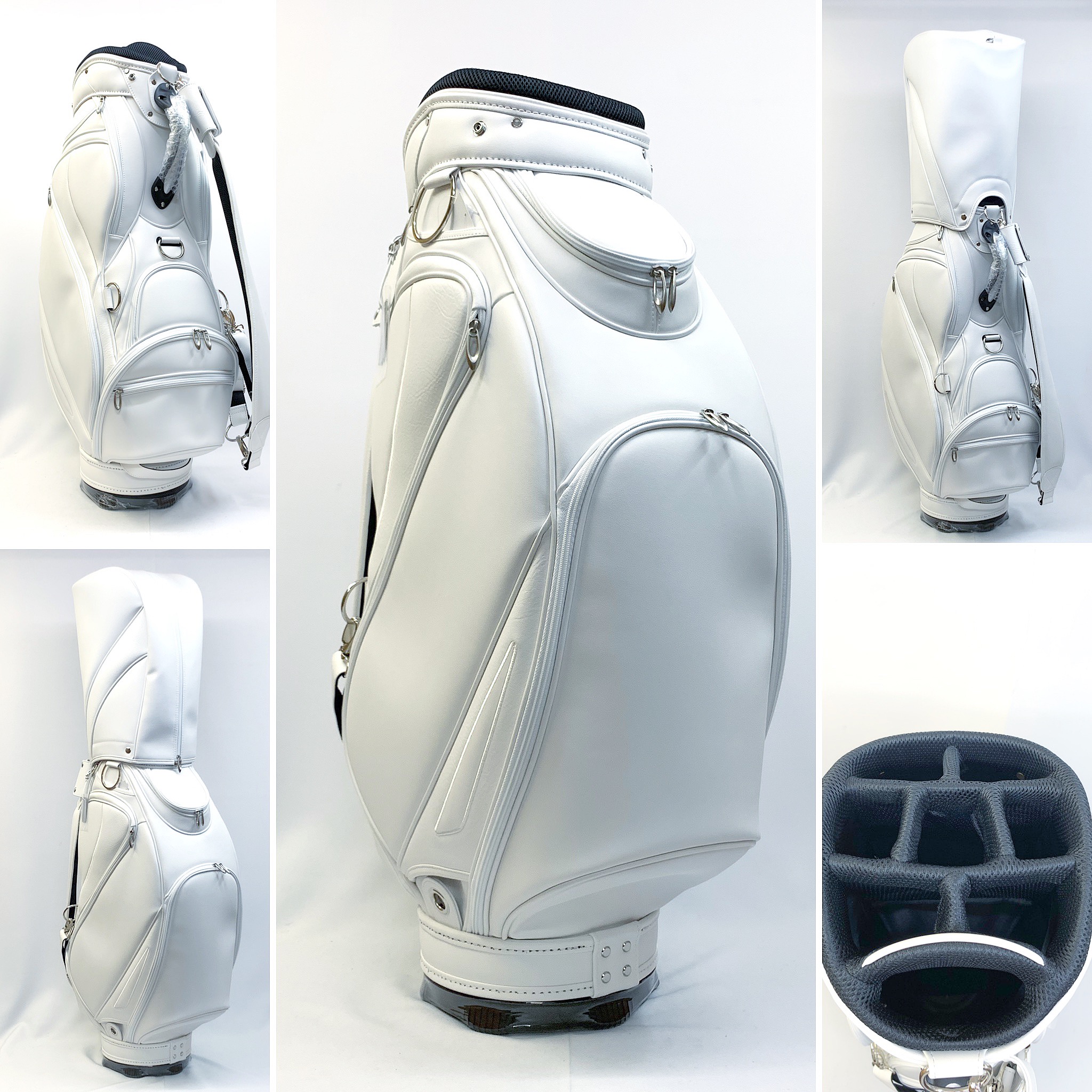 | なぜ無地のキャディバッグなんですか? | メーカーを問わず、完全なオリジナルバッグを提供したいからです。お好きなようにデザインし、オンリーワンキャディバッグを持っていただきたいからです。キャディバッグをプレゼントする場合、ノーブランドですので、送る方のゴルフクラブメーカーを気にすることなく、最高のキャディバッグをプレゼントすることができます。 | |||