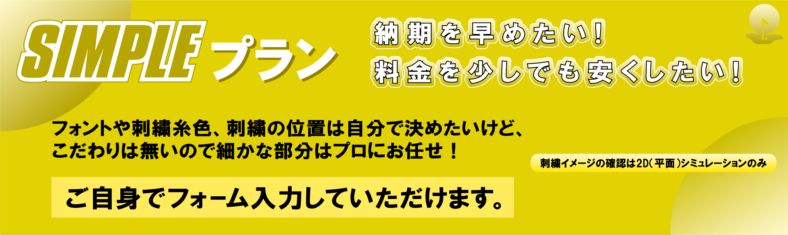 | 2パターンの刺繍シュミレーションのサンプル確認が、1工程省略されますので、通常納期より早くなります。 |